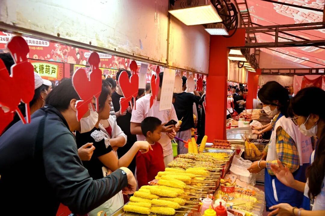 烤羊肉串、烤大鱿鱼、芝士棒、热干面